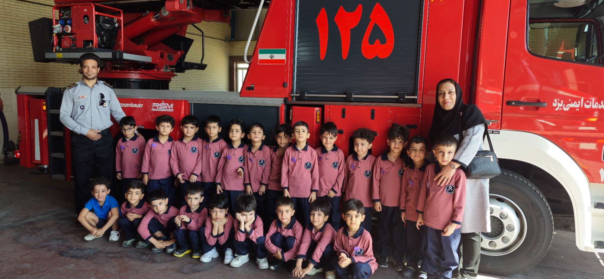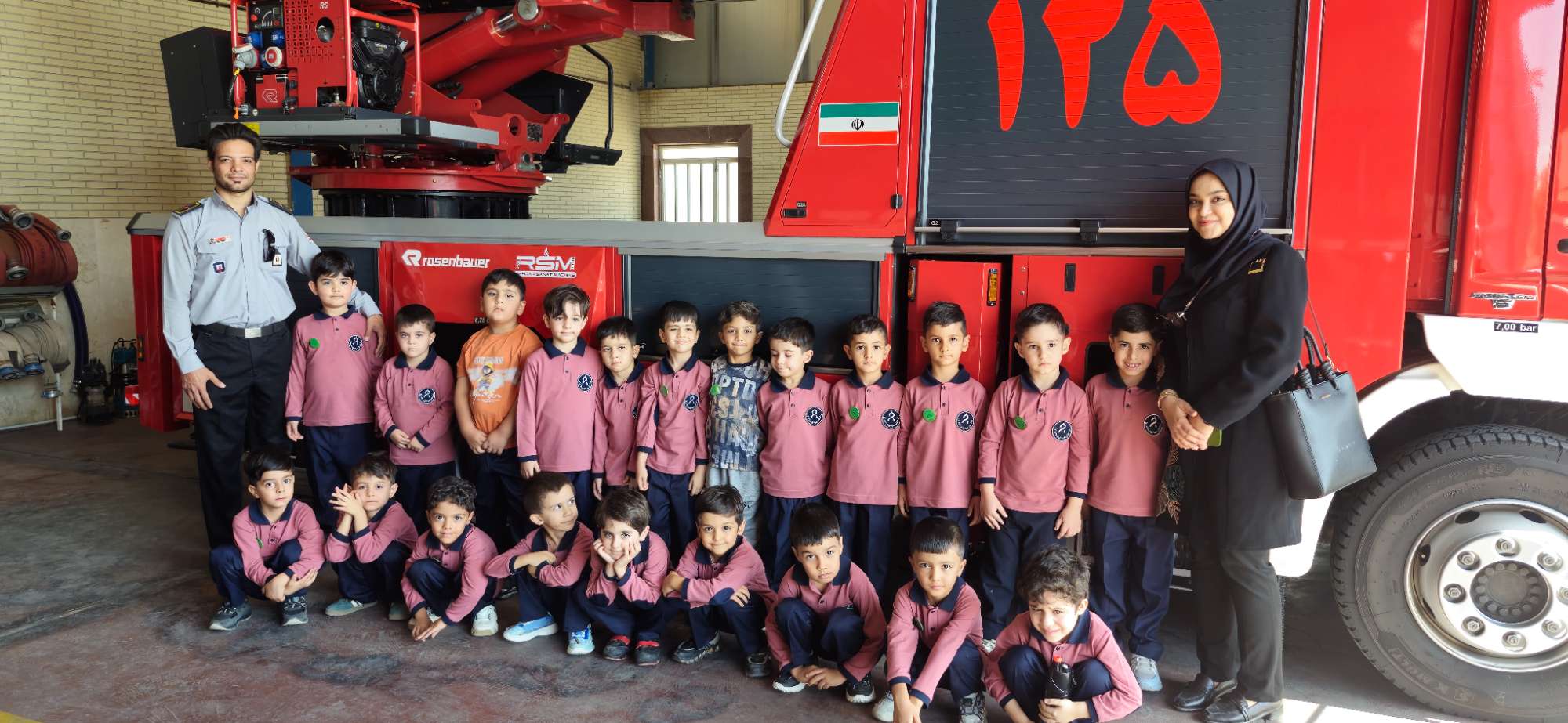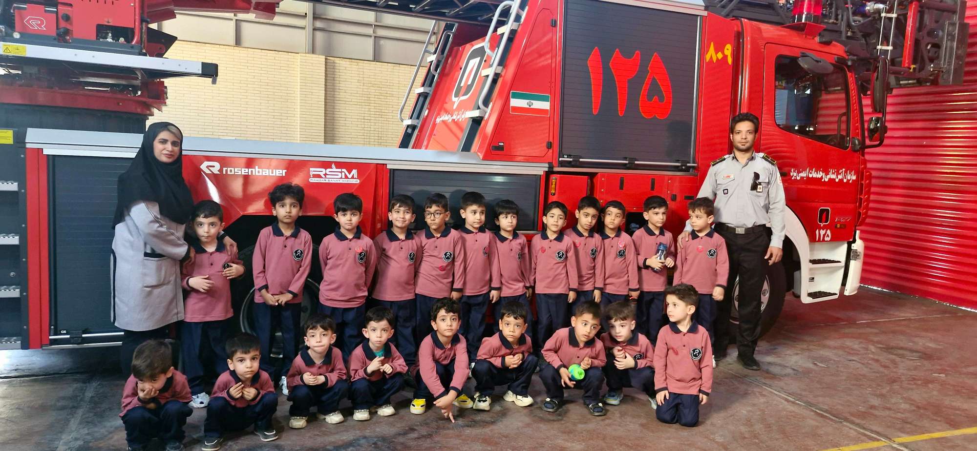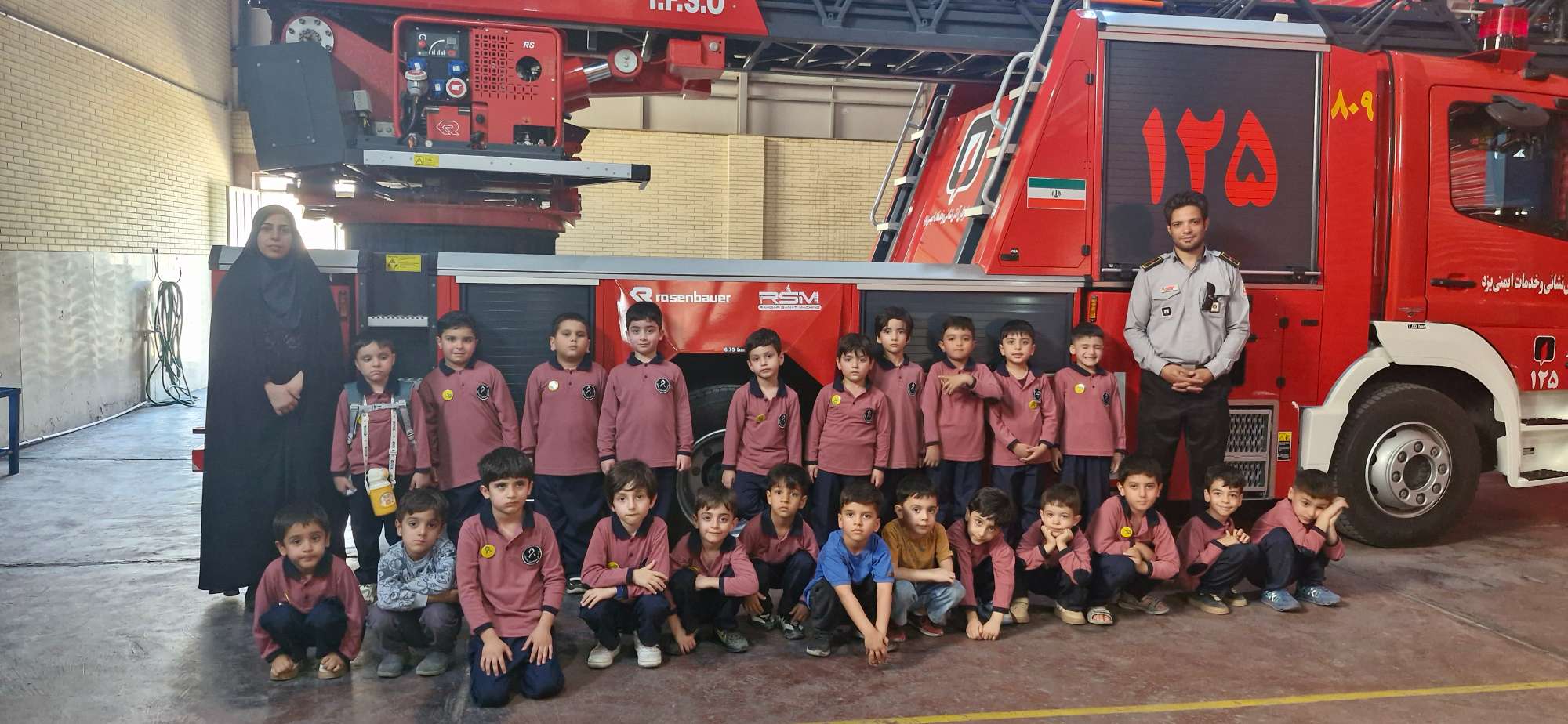 نوگلان کودکستان پسرانه ناحیه 2 روز شنبه پنجم مهر ماه همراه با مربیان خود از ایستگاه آتش نشانی جهت آشنایی با شغل آتش نشانی، تجهیزات مورد استفاده و فعالیت های قهرمانانه آتش نشانان بازدیدی داشتند این بازدید با هدف تکمیل مرحله ی اول مشاهده پروژه مناسبت های ماه مهر انجام شد تا نوگلان در روز( 7 مهر ماه) ، روز آتش نشان فعالیت ها و بازی های خود را از آنچه مشاهده کرده بودند به صورت پروژه ای انجام دهند.