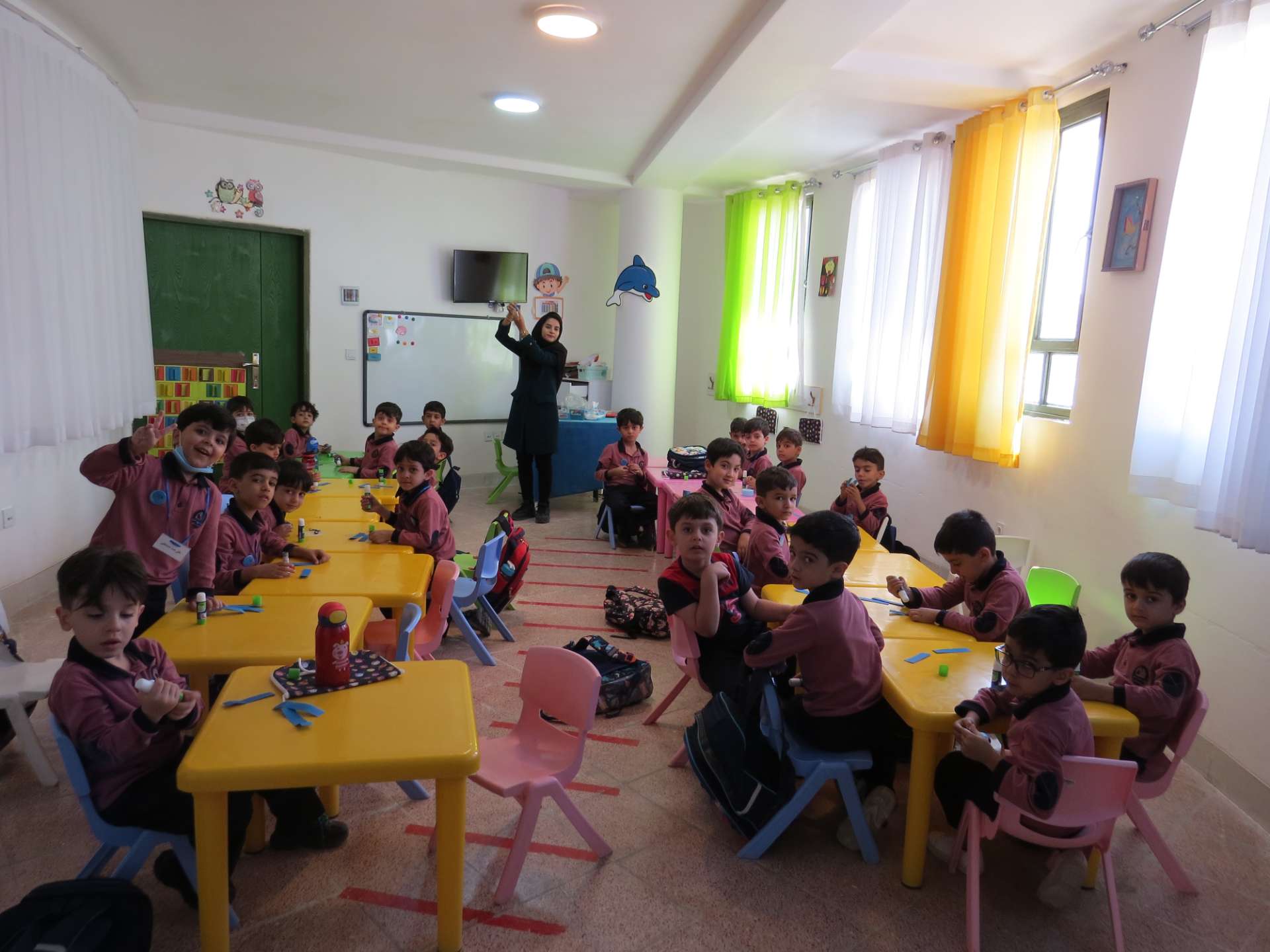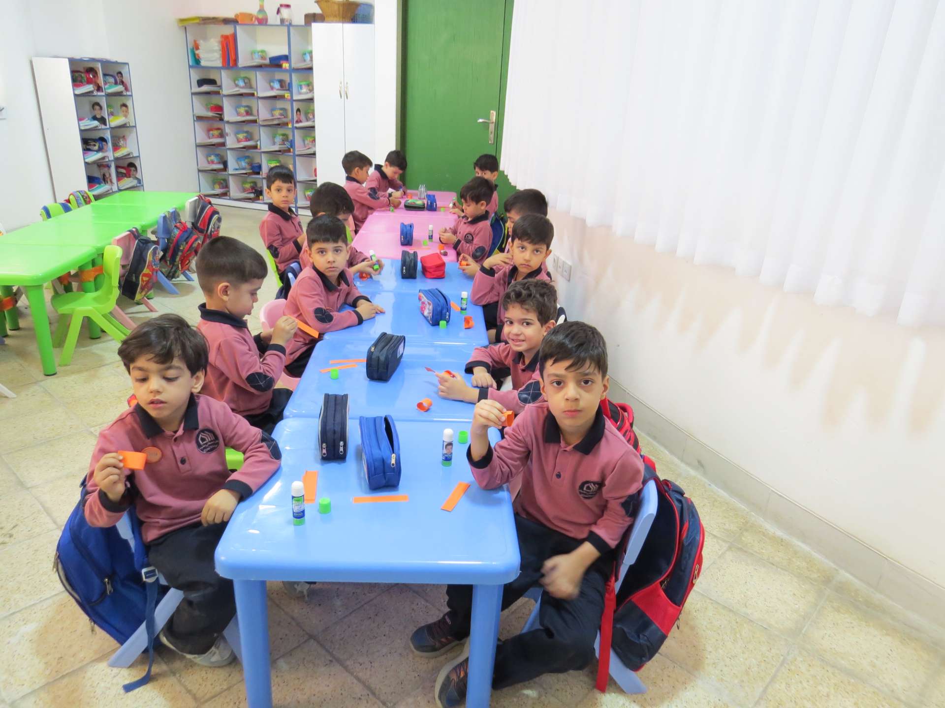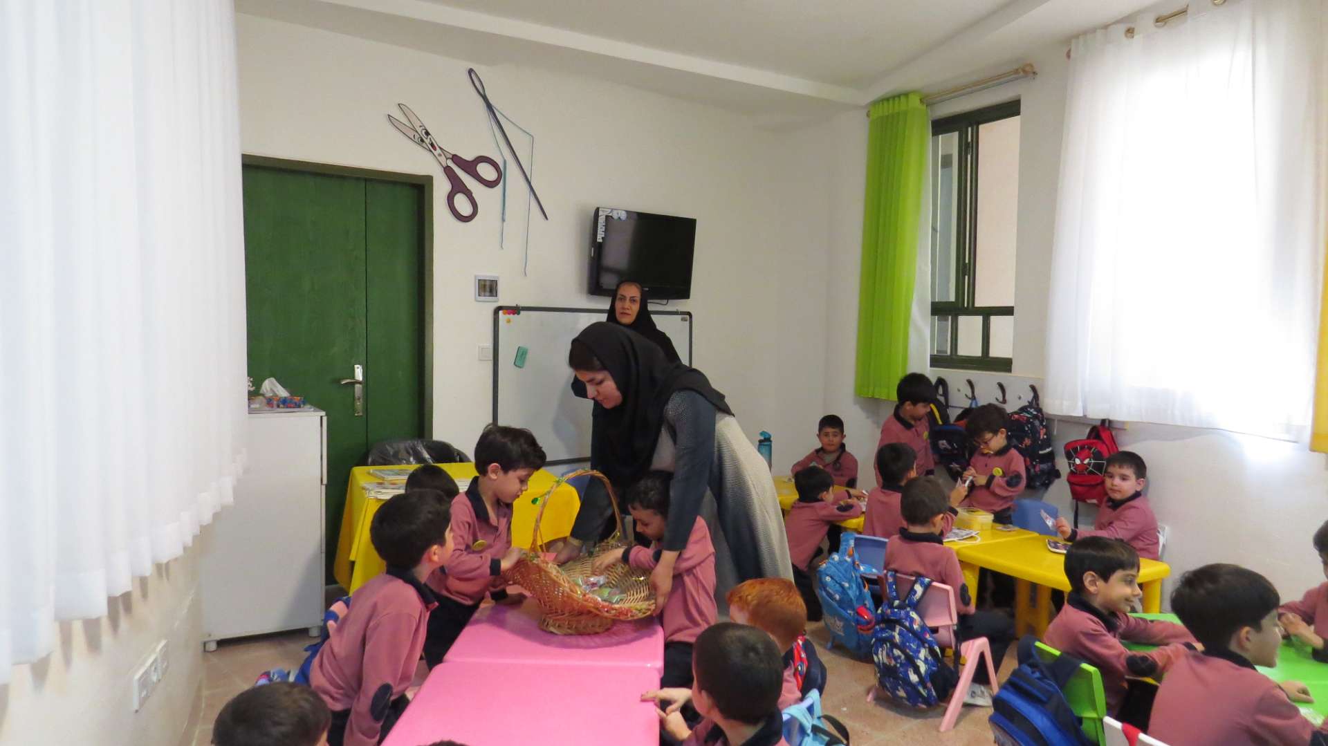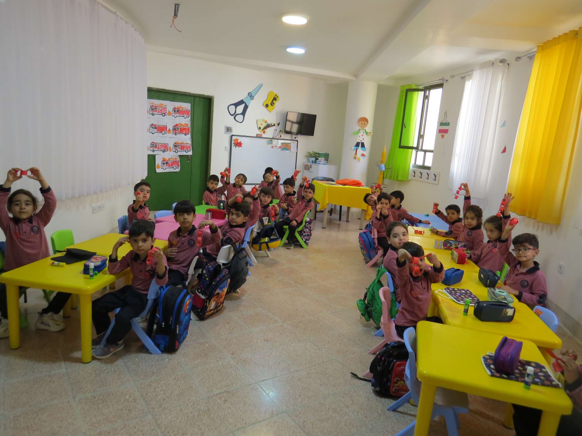 نوآموزان حلقه هایی به رنگ کلاس خود درست کردند و دو کلاس و سه کلاس با هم به صورت مسابقه حلقه ها را داخل یک نخ کردند و حلقه ها را به هم رساندند.مثلا کلاس شادی حلقه های قرمز را داخل نخ کردند و کلاس کوشا که حلقه های سبز داشتند را به هم رساندند و به این صورت کلاس ها پیمان وحدت با هم بستند. در آخر داخل کلاسها با بسته های شکلات پذیرایی شدند