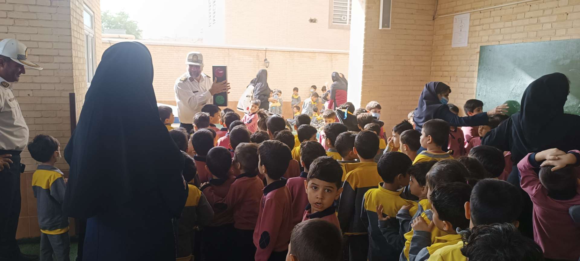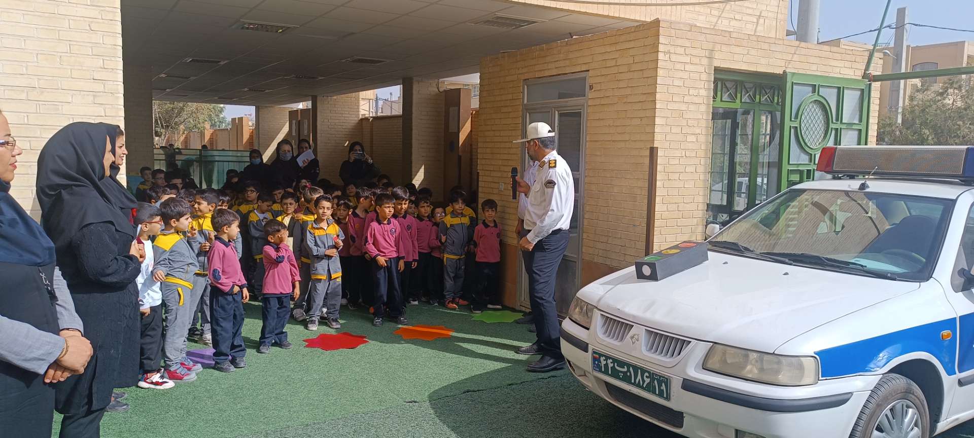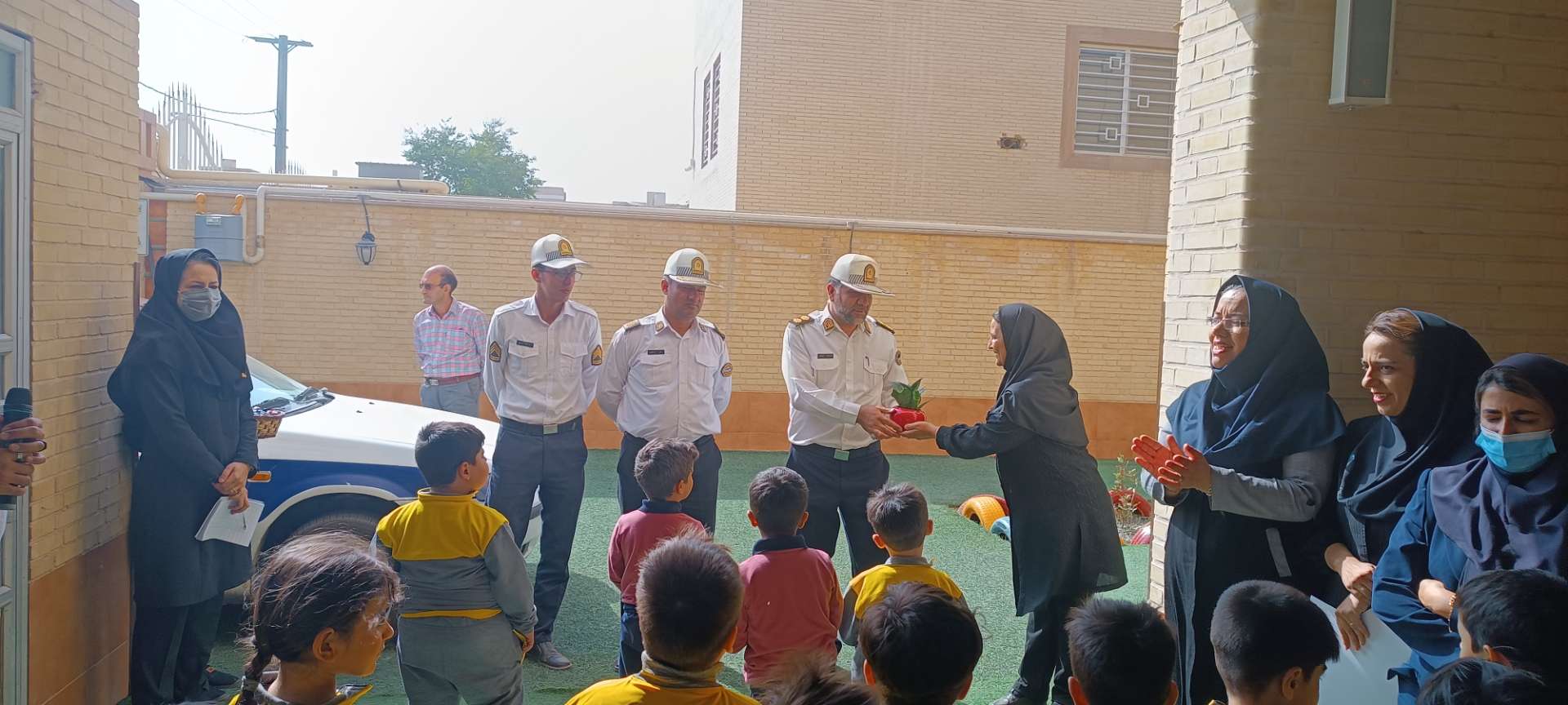 به مناسبت هفته نیروی انتظامی و آشنایی نوآموزان با نظم و رعایت قوانین و مقررات با دعوت از مامورین محترم نیروی انتظامی کودکان با کسانیکه در امر عبور و مرور و حفظ آرامش بین مردم فعالیت می کنند آشنا شدند و همچنین با مفاهیم چراغ راهنمایی و سه رنگ سبز و زرد و قرمز آن ،عبور از خیابان از خطوط عابرپیاده و احترام نظامی وصدای آژیر پلیس را یاد گرفتند و در آخر با پذیرایی از این ماموران جان بر کف و دادن هدیه ناقابل سعی را بر این داشتیم تا گوشه ای از زحمات این عزیزان را قدر بدانیم