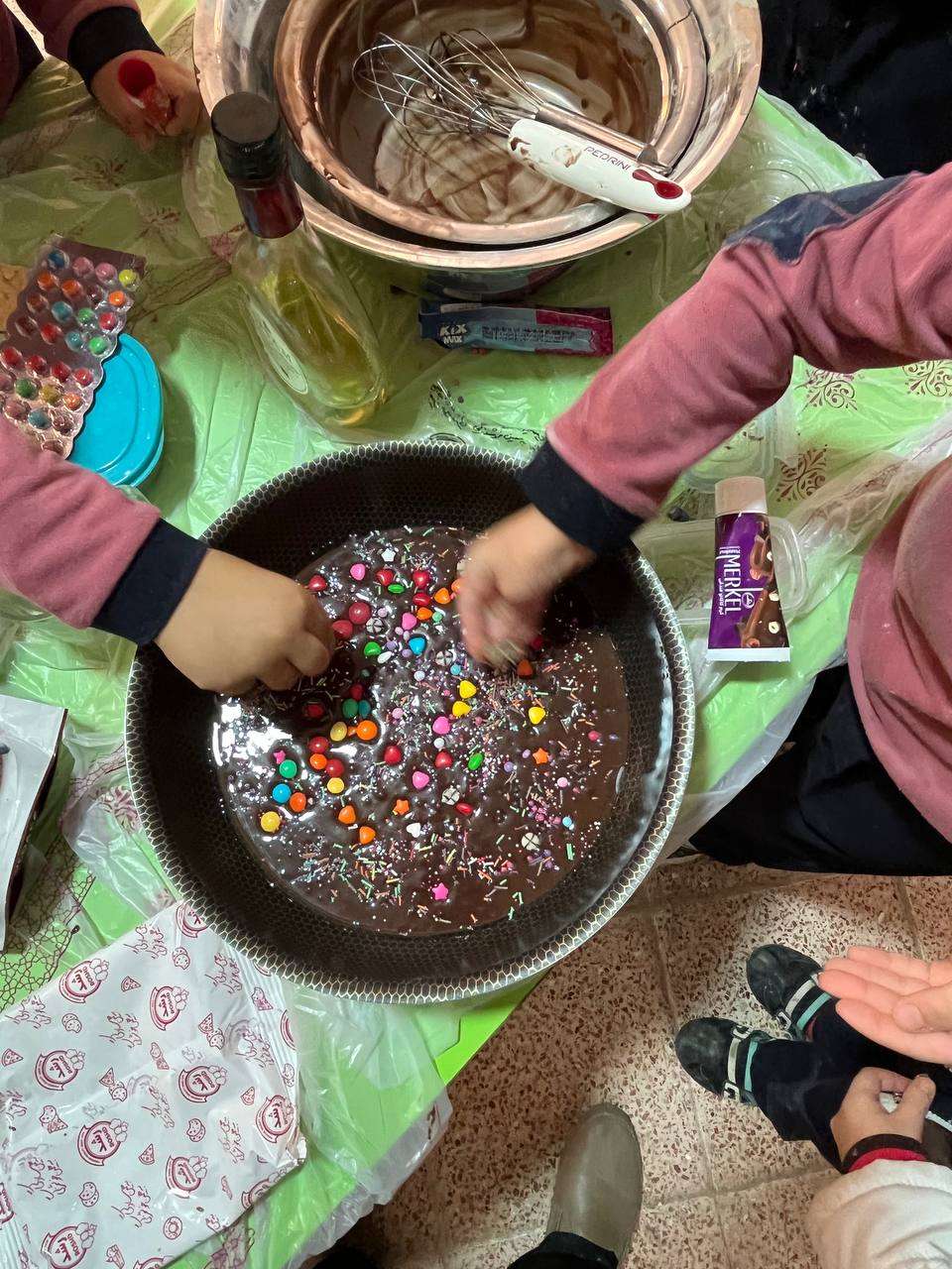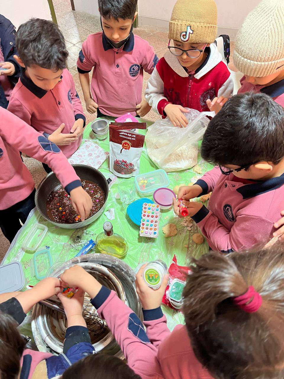 5 - آشنایی با شغل قنادی ، نوآموزان به صورت گروهی با هم کیک پختن و با مراحل درست کردن کیک آشنا شدند