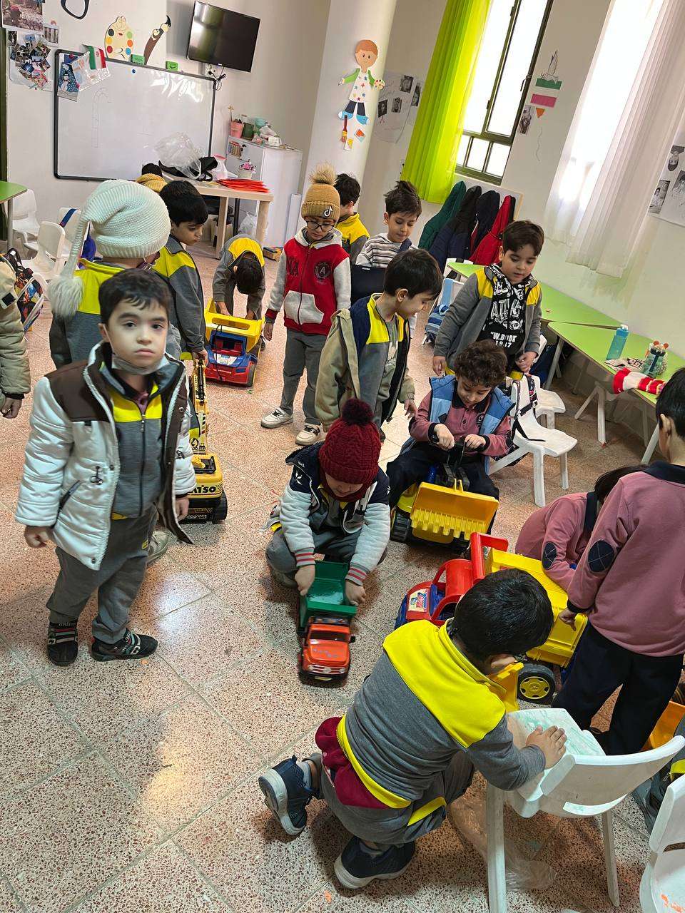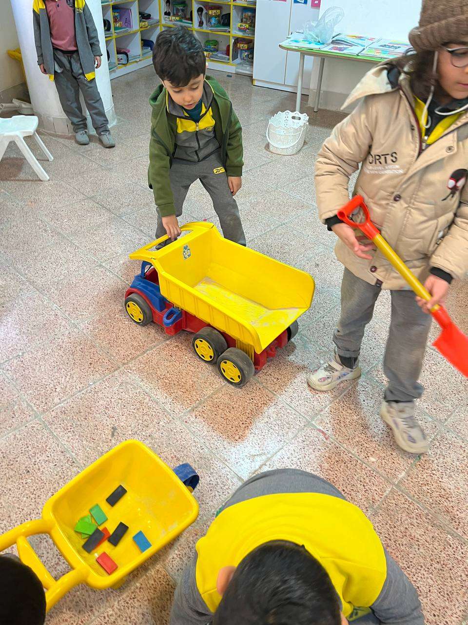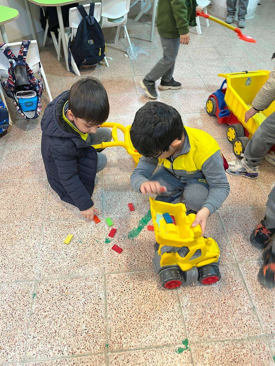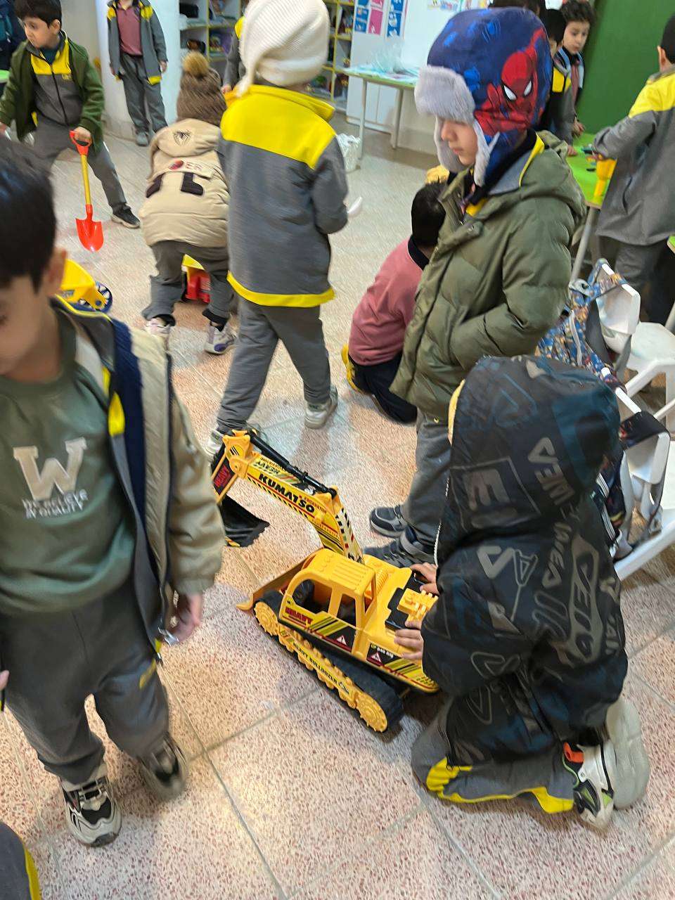 7 - آشنایی با شغل ساختمانی : نوآموزان با آوردن ماشین و فرغون ، تراکتور و جرثقیل و بازی با این وسایل با شغل های ساختمانی آشنا شدند