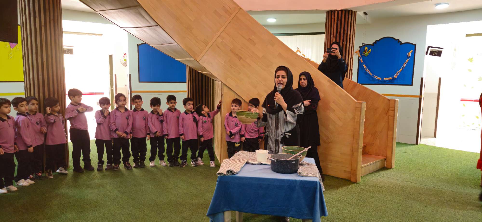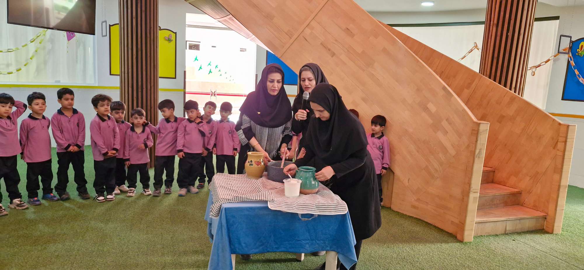 نوگلان پیش دبستانی پسرانه حضرت جوادالائمهناحیه دو یکشنبه 15 مهرماه با شعار (( برای محیط زیست کودکان ، برای آینده ای پاک و سالم تر )) و روز روستا و عشایر ، توسط کلیپ های آموزشی با فعالیت های روستاییان و عشایر آشنا شدند و یکی از فعالیت های روستاییان و عشایر که درست کردن ماست می باشد را با عنوان داستان (( از مزرعه تا سفره )) تجربه کردند.