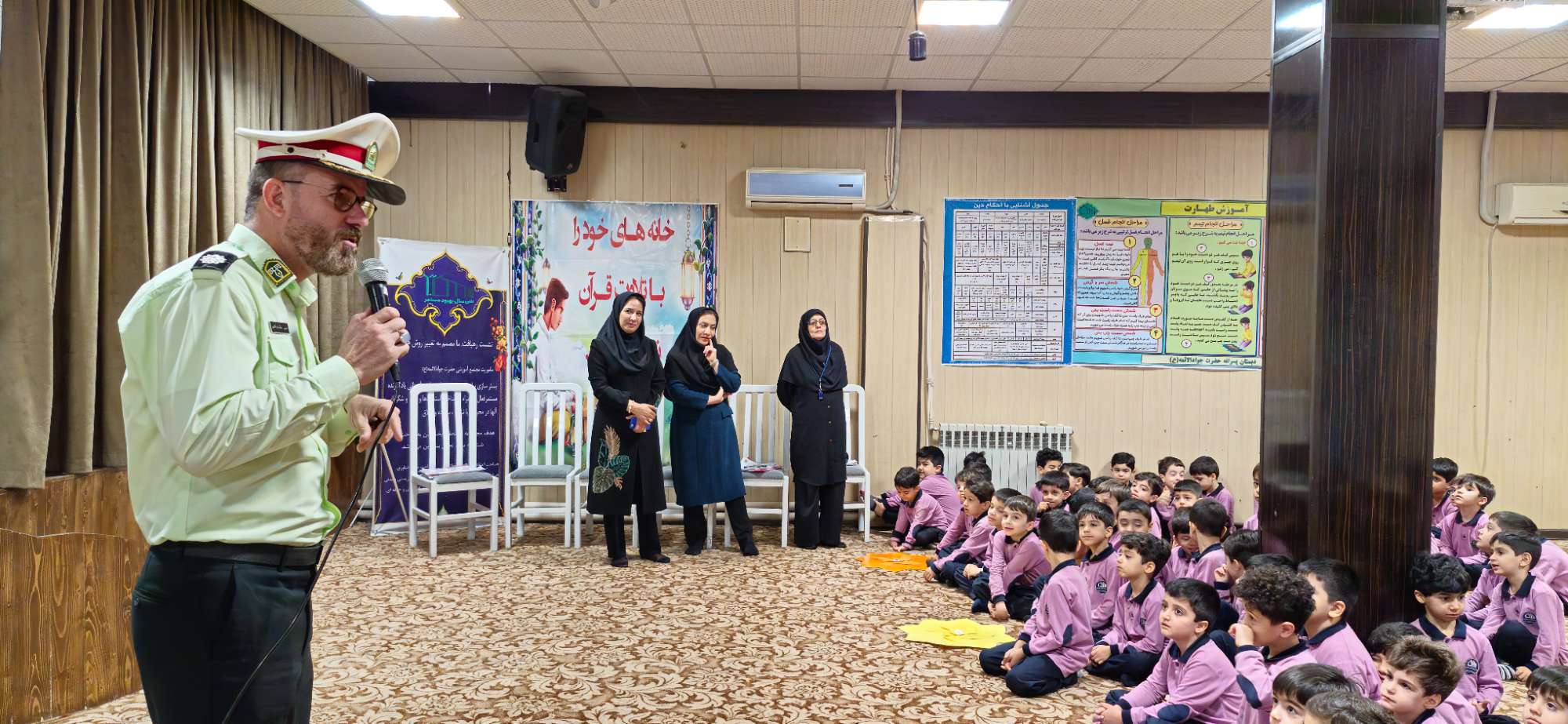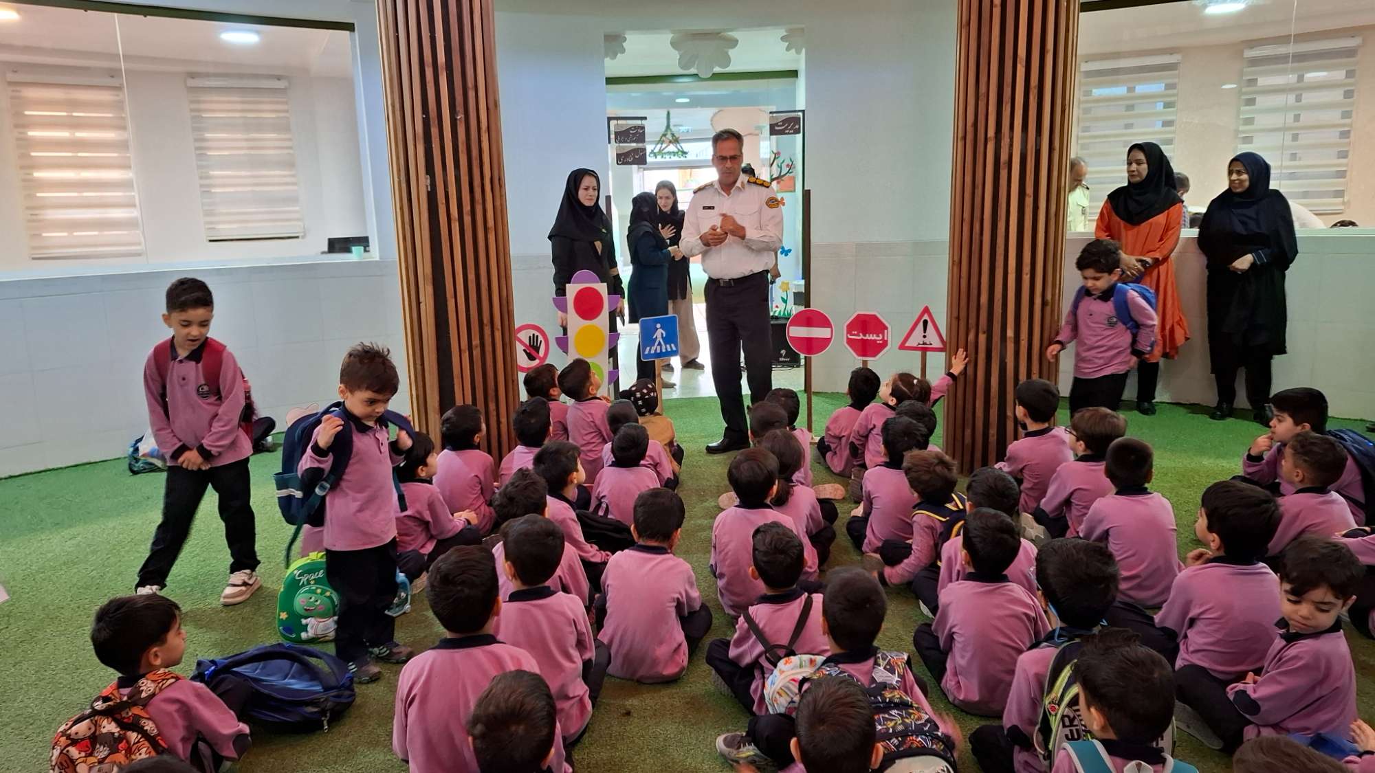 به مناسبت هفته نیروی انتظامی و شروع هفته ی ملی کودک ، کودکستان پسرانه حضرت جوادالائمه ناحیه دو ، باشعار (( برای خانواده کودکان ، برای آینده ای امن تر و آرام تر )) امروز شنبه 14 مهر ماه در خدمت سرهنگ غلامی و گروه اجرای نیروی انتظامی بودیم و نوگلان با قوانین و مقررات راهنمایی و رانندگی آشنا شدند و یک روز شاد و به یاد ماندنی را در کنار این عزیزان تجربه کردند و در انتها با شعرخوانی و تقدیم نقاشی های نوآموزان و یک گلدان گل از سبزپوشان سپیددل تقدیر و تشکر شد